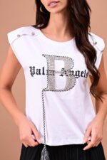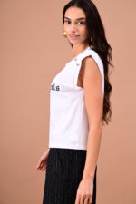 Αμάνικη μπλούζα με print και διακοσμητικά μεγάλα στρας και στρογγυλή λαιμόκοψη.