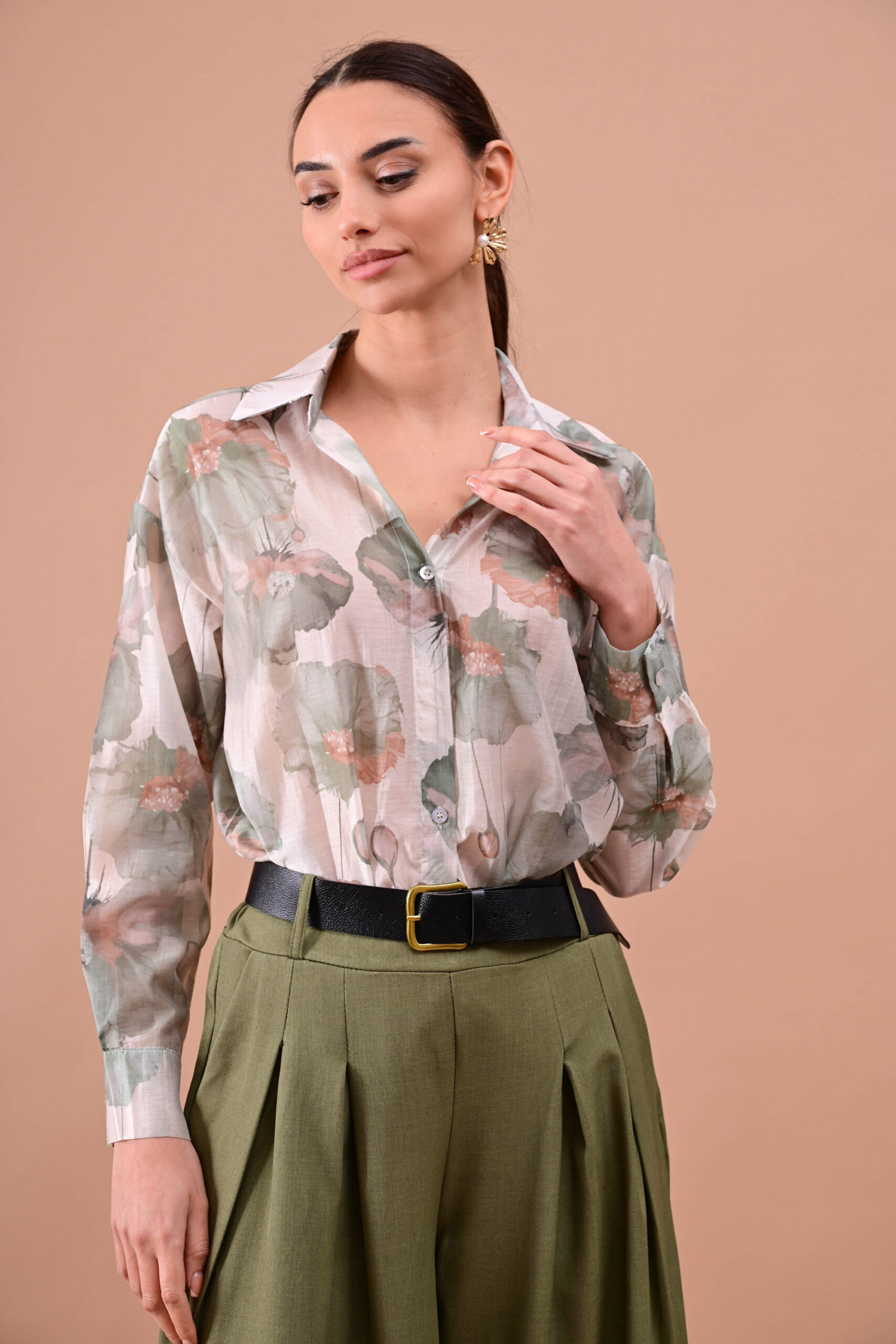 Πουκάμισο από ημιδιαφανές ύφασμα με φλοράλ μοτίβο.