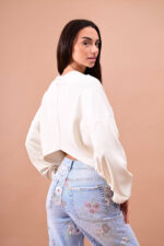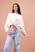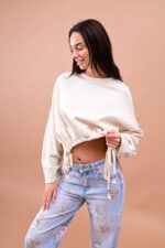 Μακρυμάνικη μπλούζα φούτερ με ρυθμιζόμενα κορδόνια στα μανίκια και στη μέση.