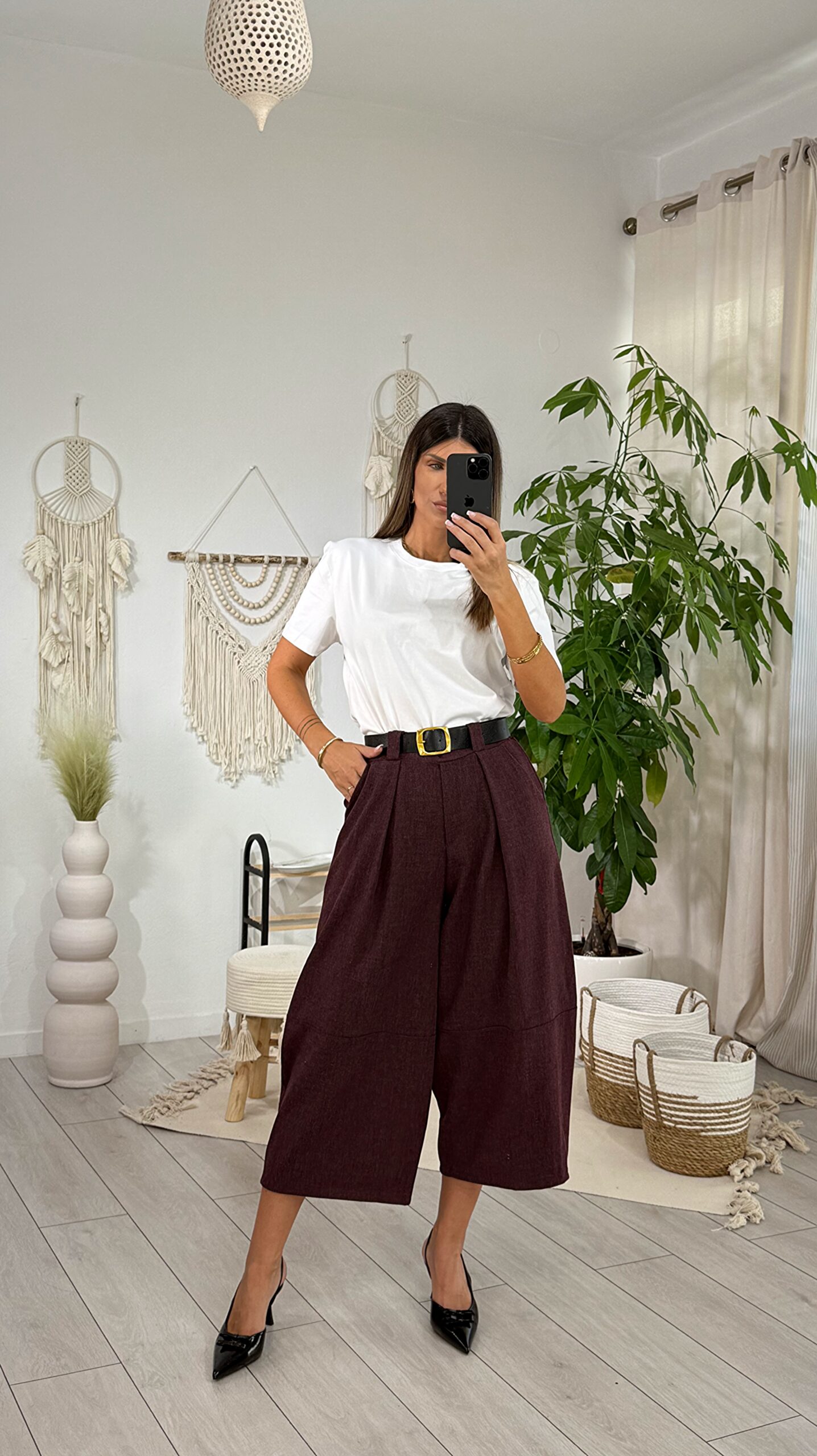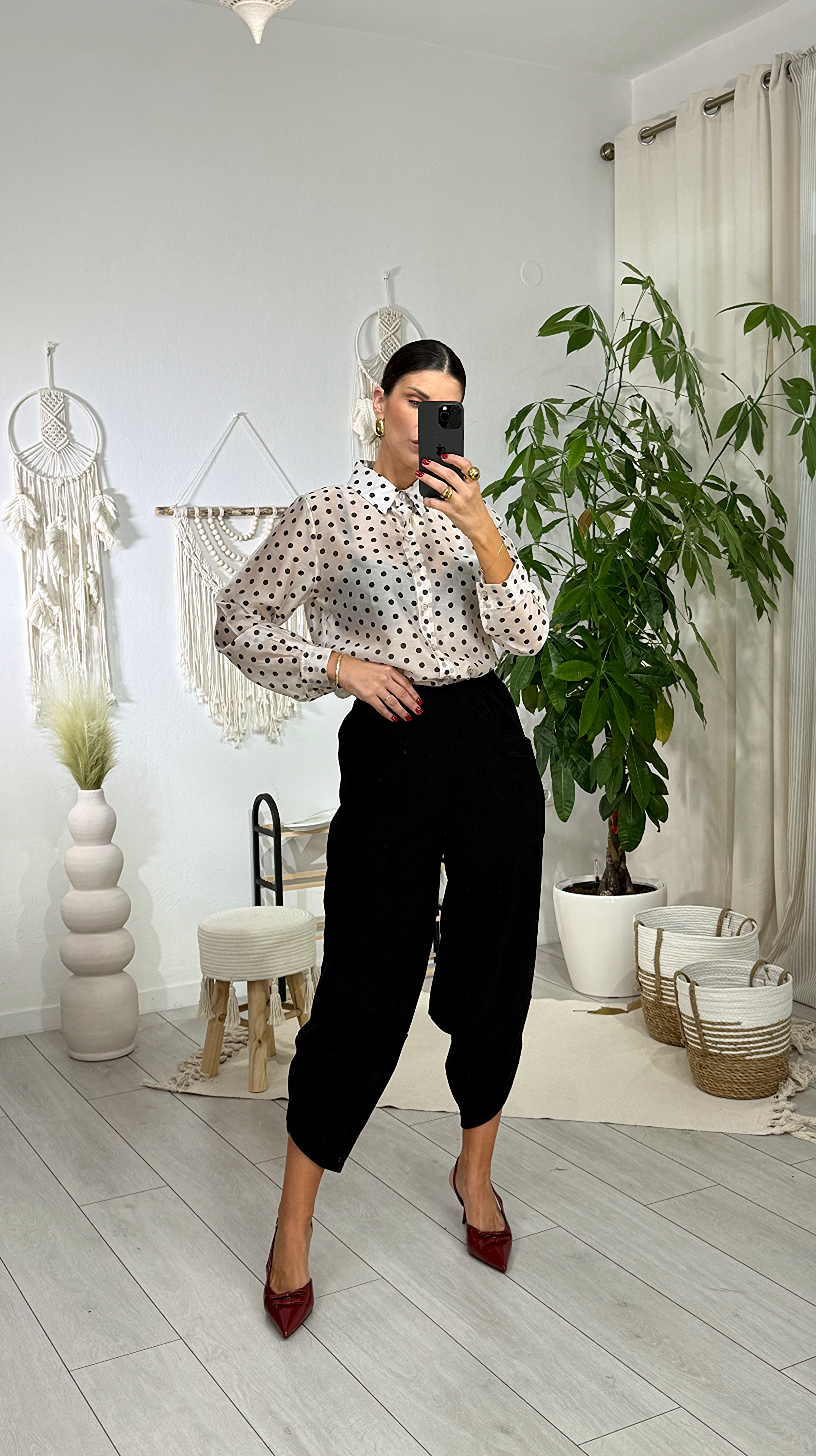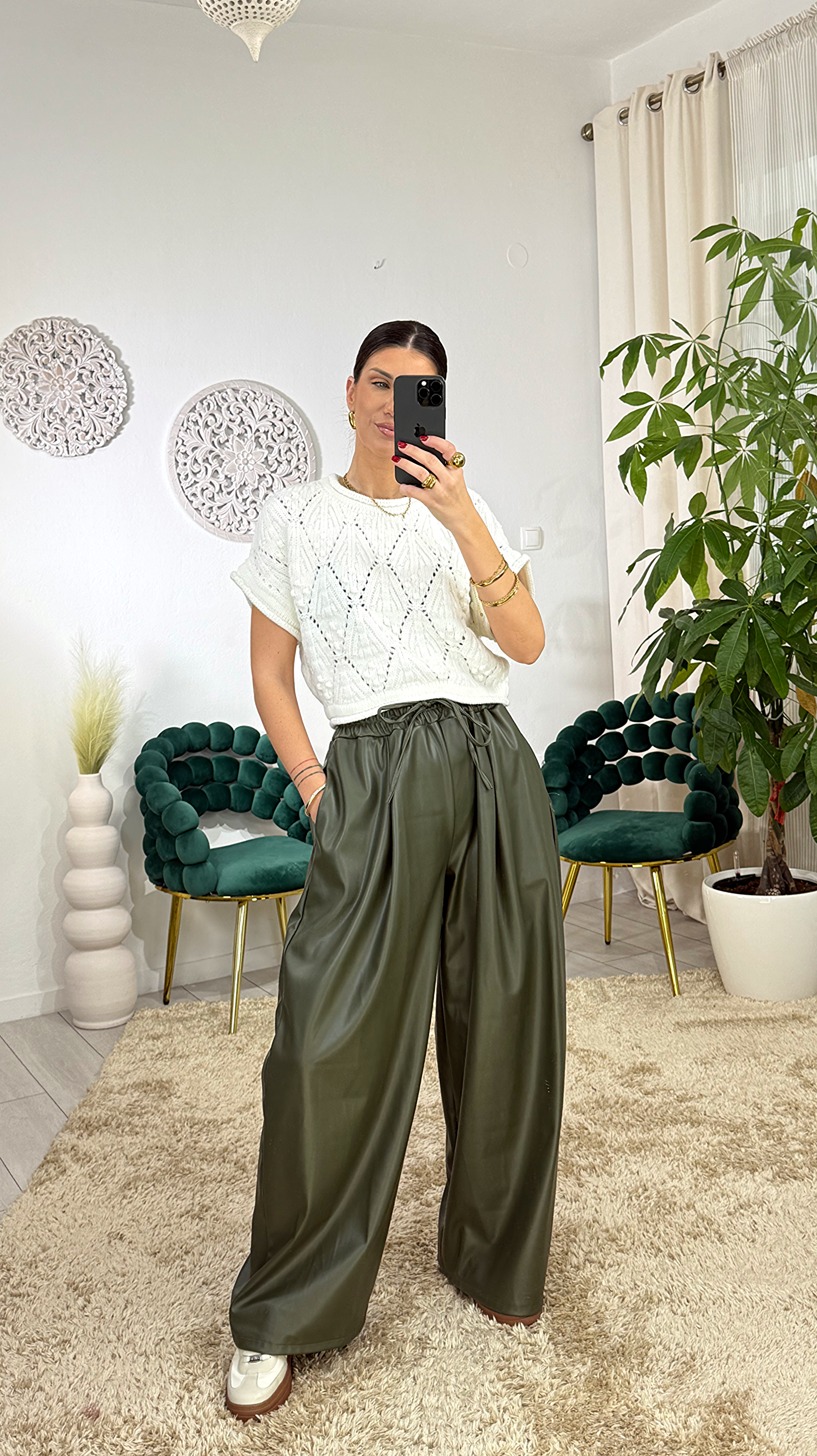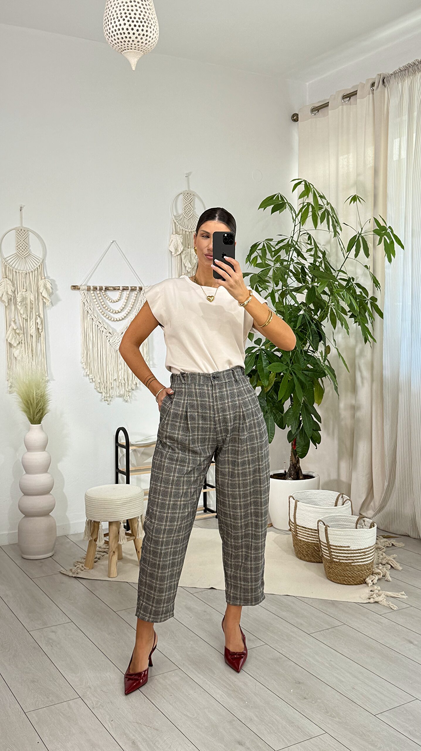 Ψηλόμεσο λευκό παντελόνι με πιέτες, κατασκευασμένο από ανάλαφρο ύφασμα για άνεση και κομψότητα όλη μέρα. Ιδανικό για chic εμφανίσεις στο γραφείο ή τη βόλτα, συνδυάζεται εύκολα με πουκάμισα, τοπ ή σακάκια.