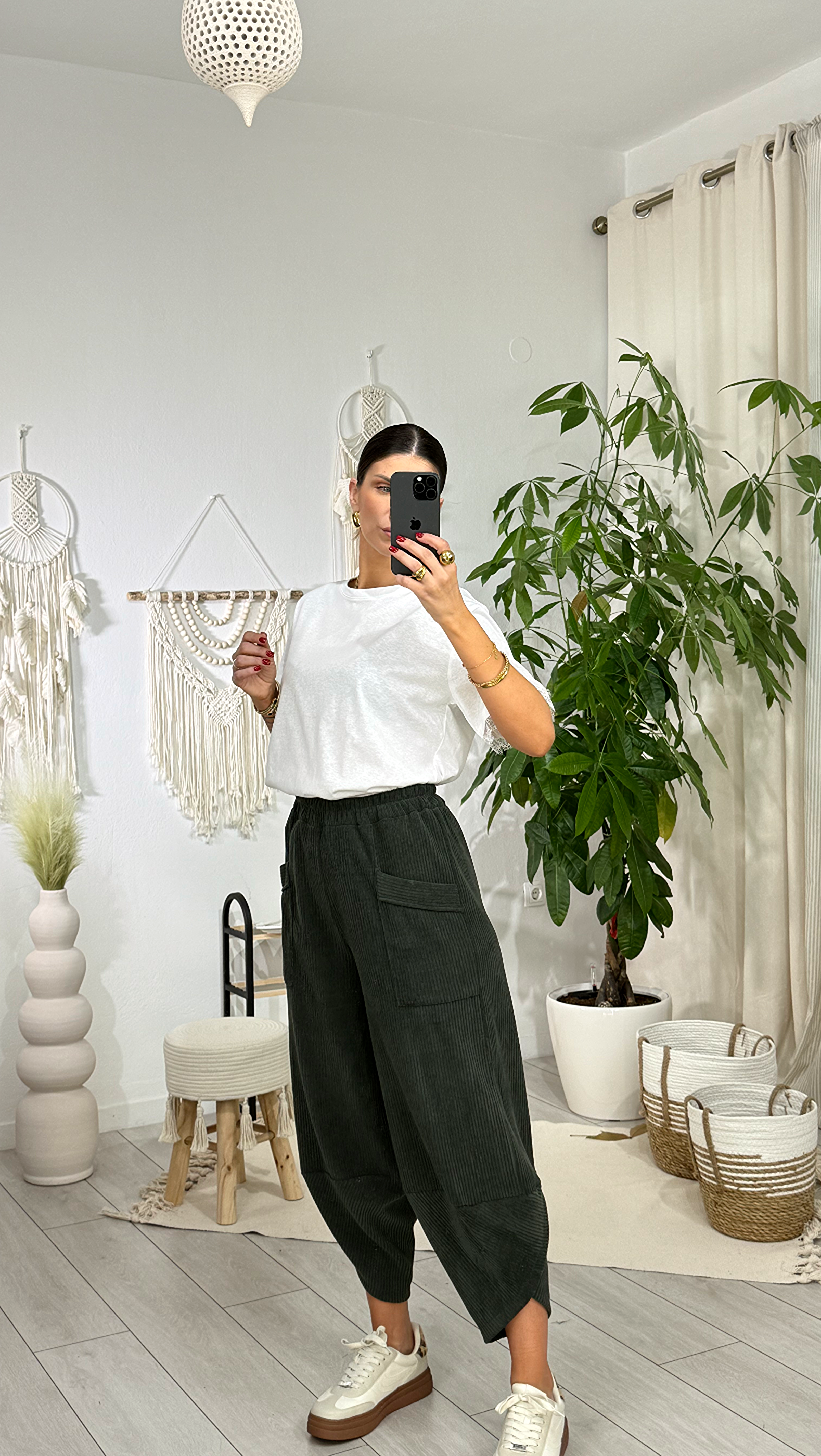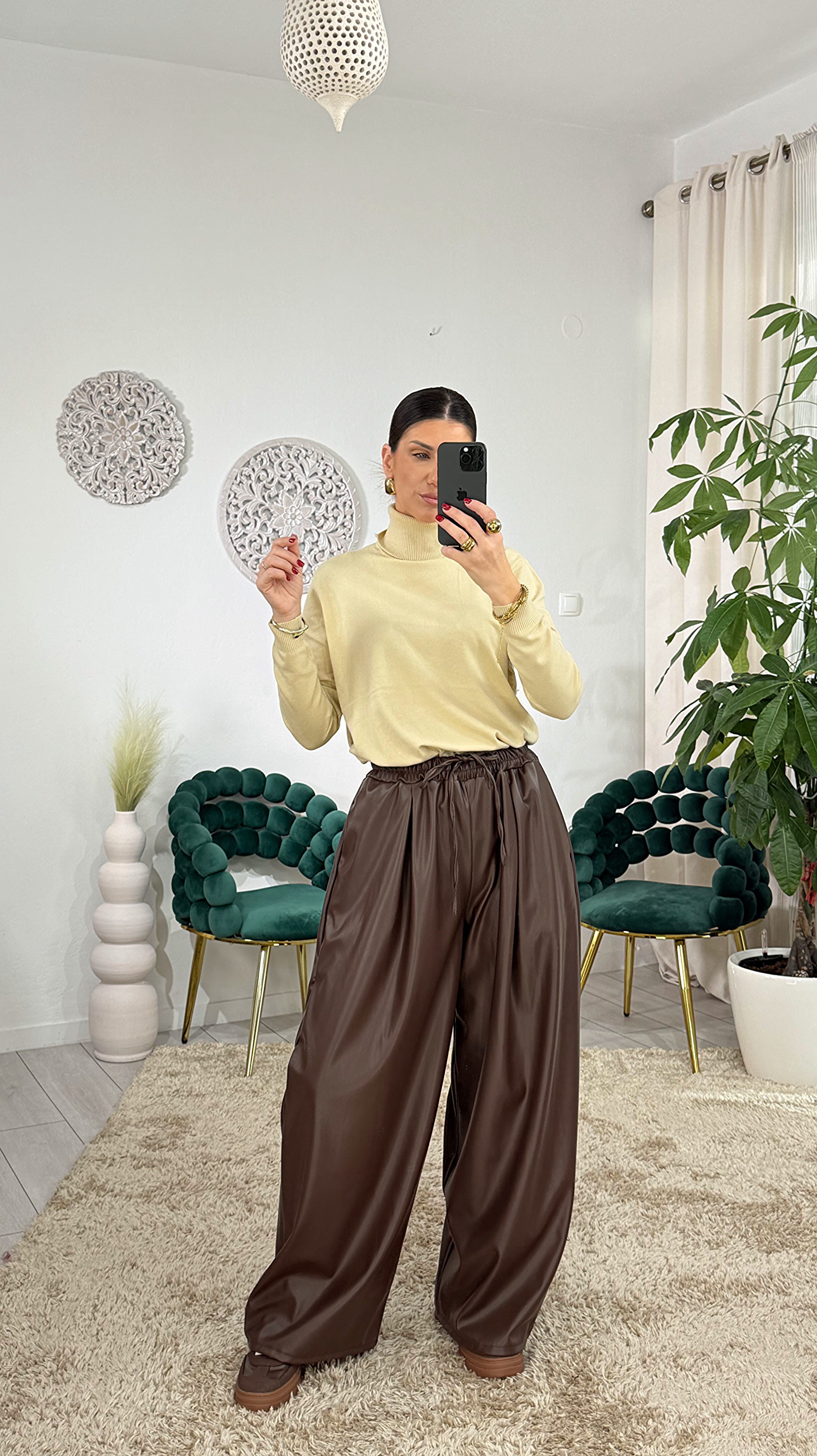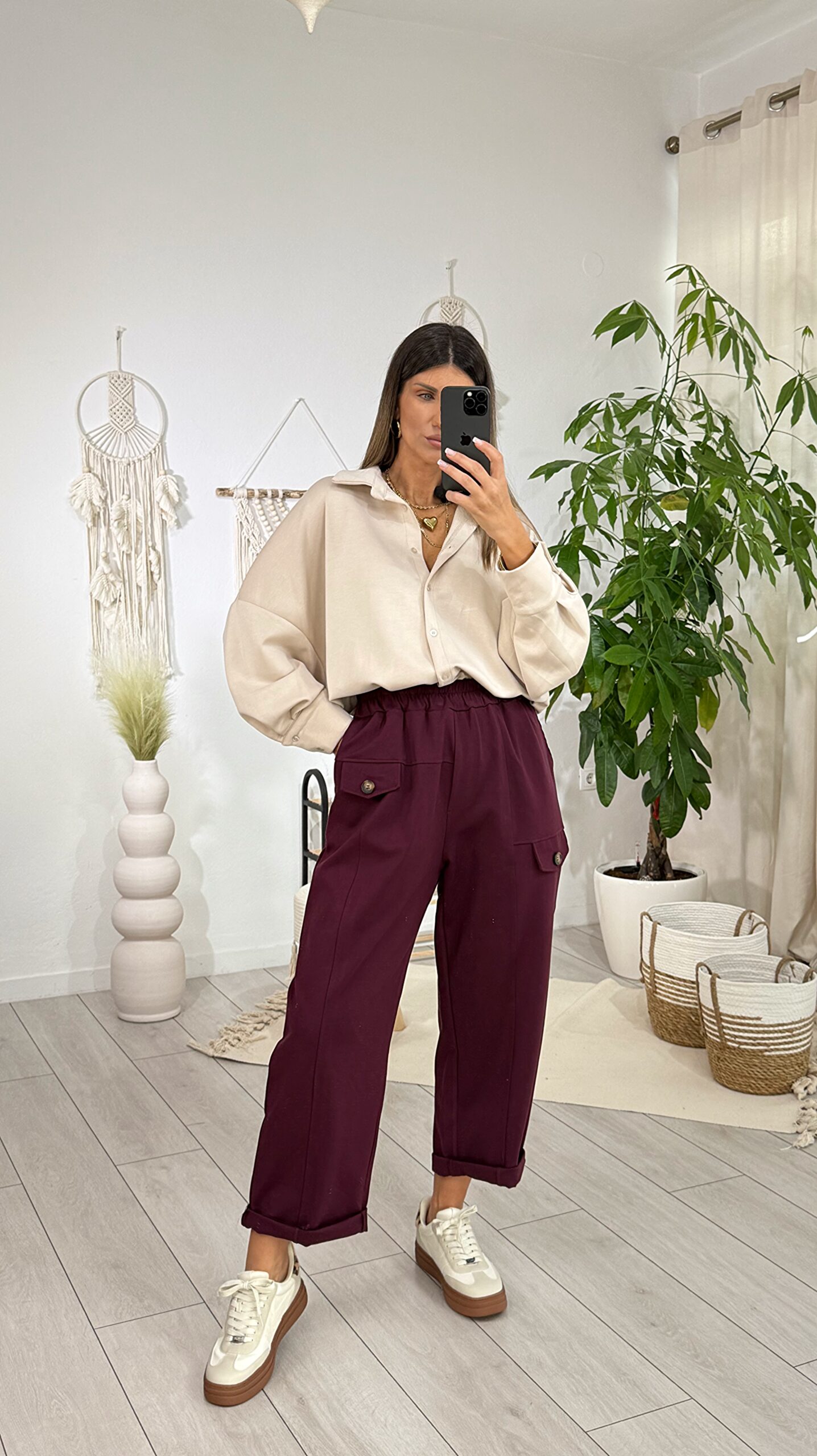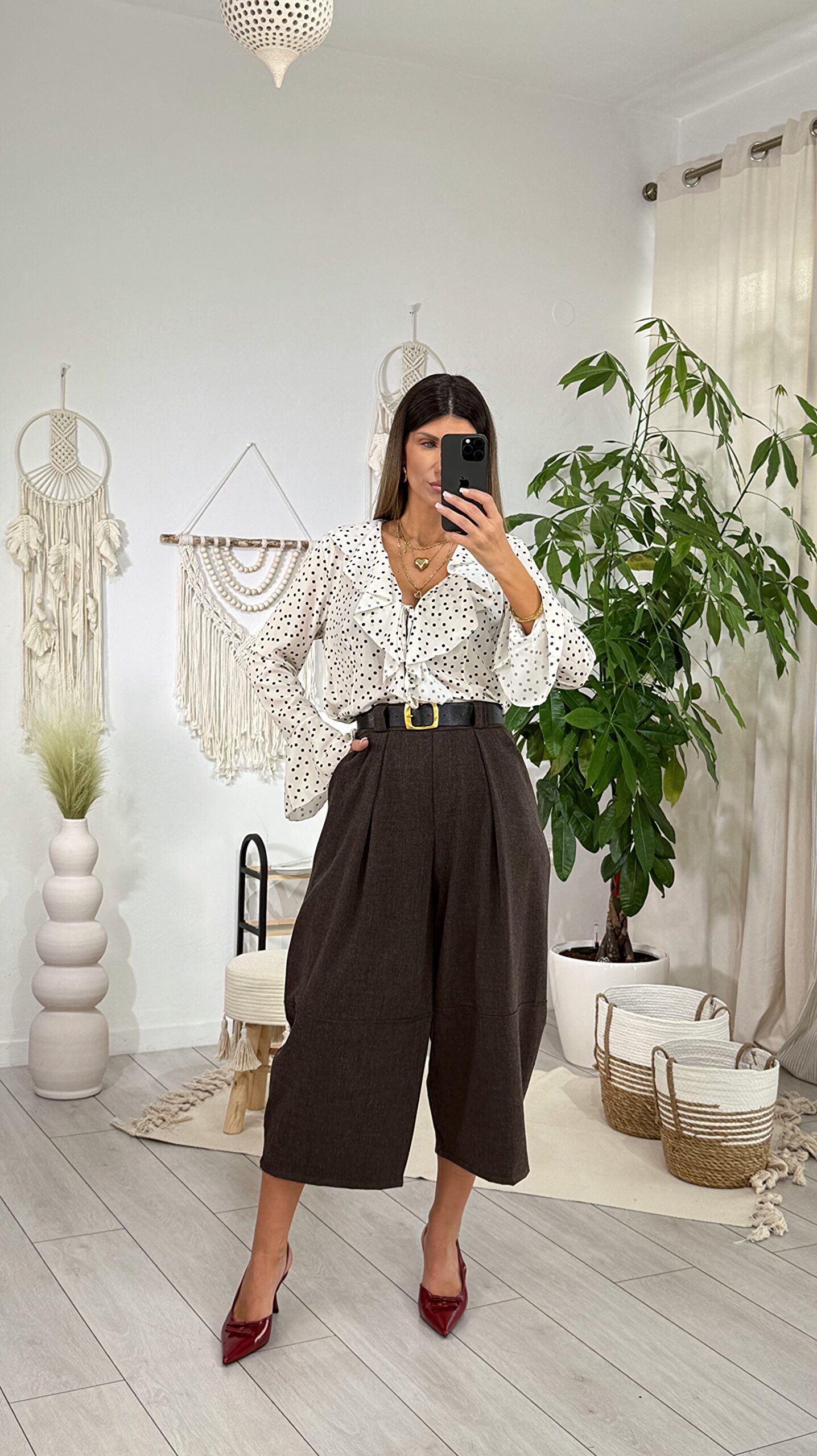 Ψηλόμεσο λευκό παντελόνι με πιέτες, κατασκευασμένο από ανάλαφρο ύφασμα για άνεση και κομψότητα όλη μέρα. Ιδανικό για chic εμφανίσεις στο γραφείο ή τη βόλτα, συνδυάζεται εύκολα με πουκάμισα, τοπ ή σακάκια.