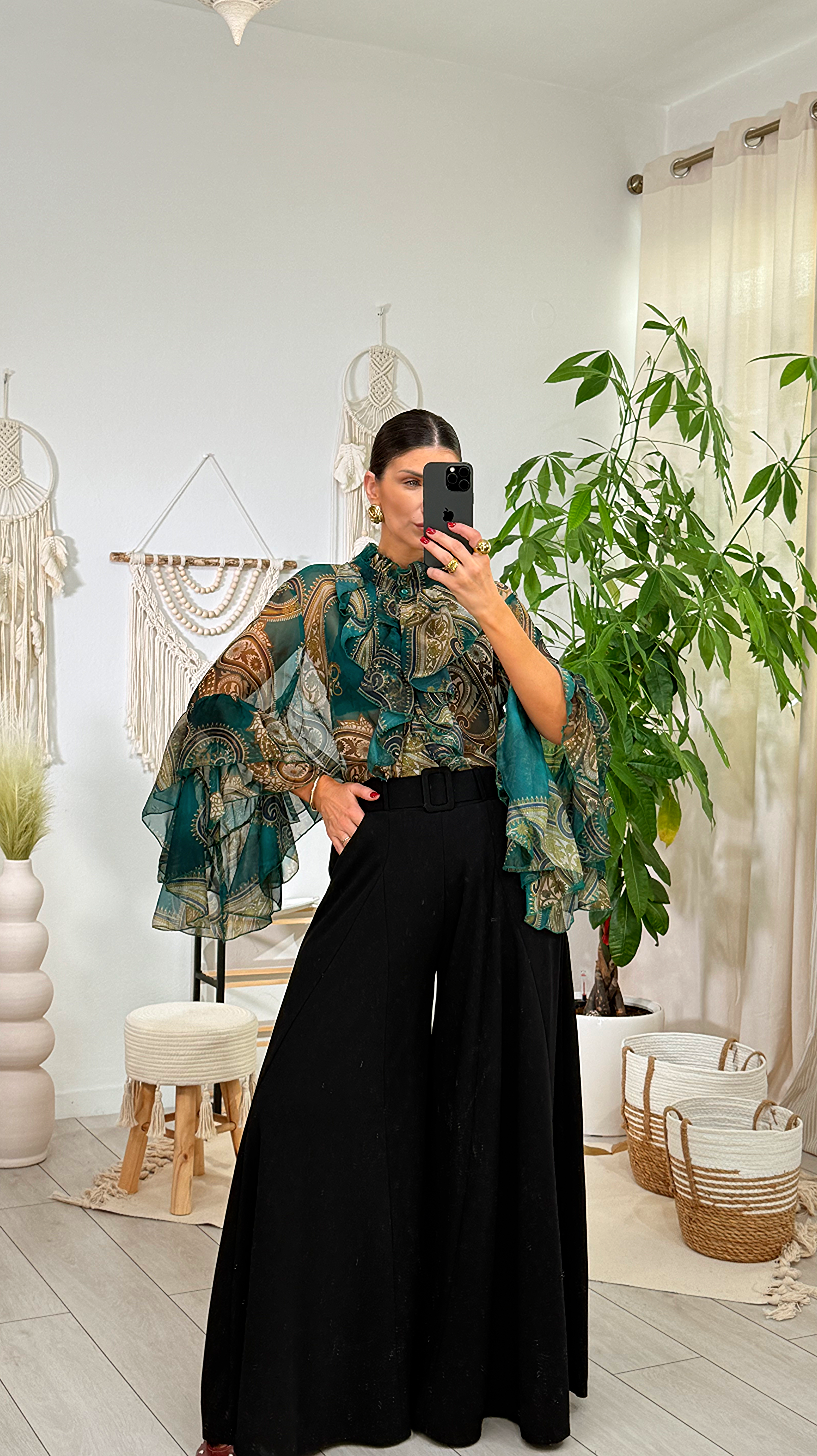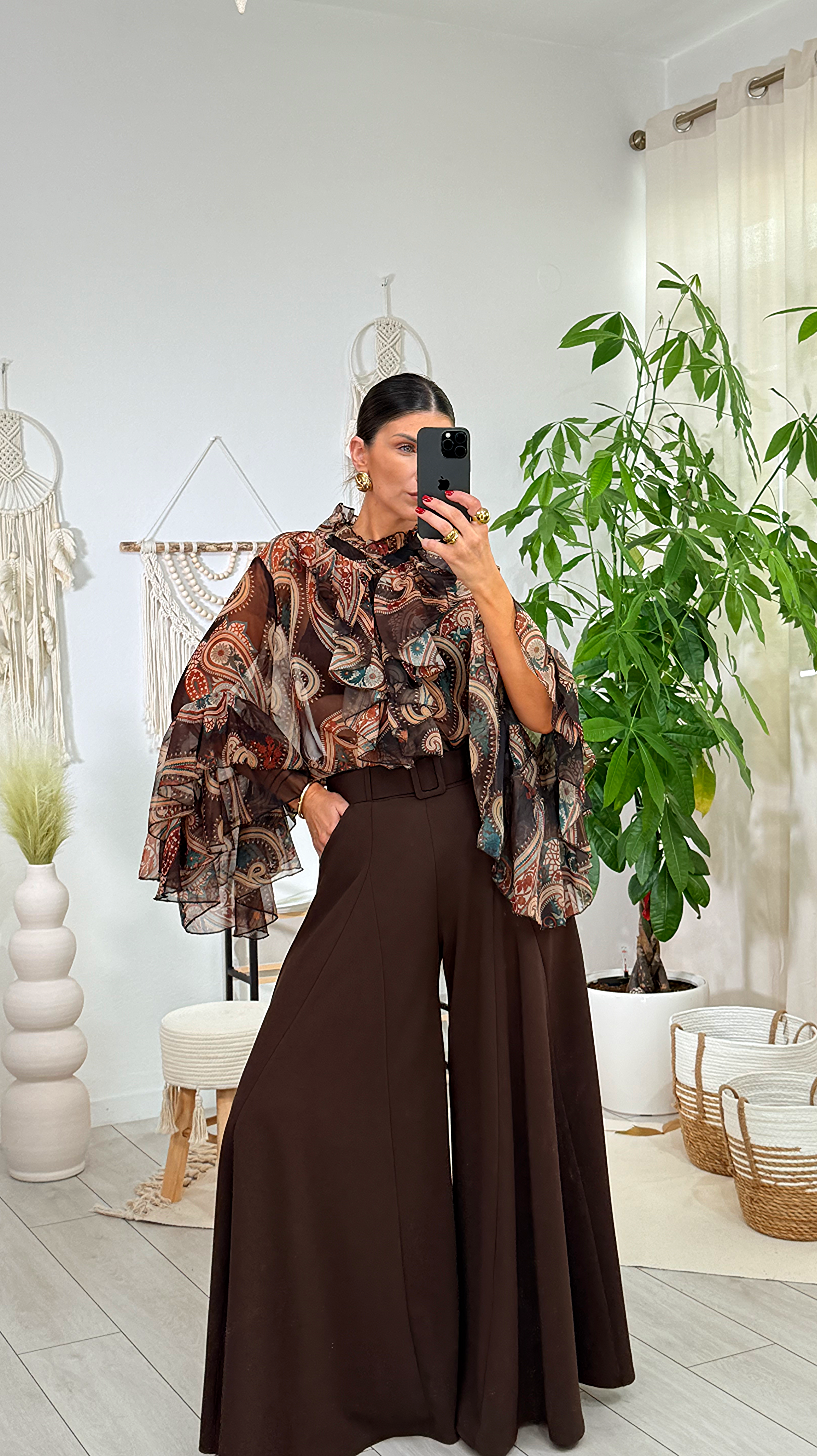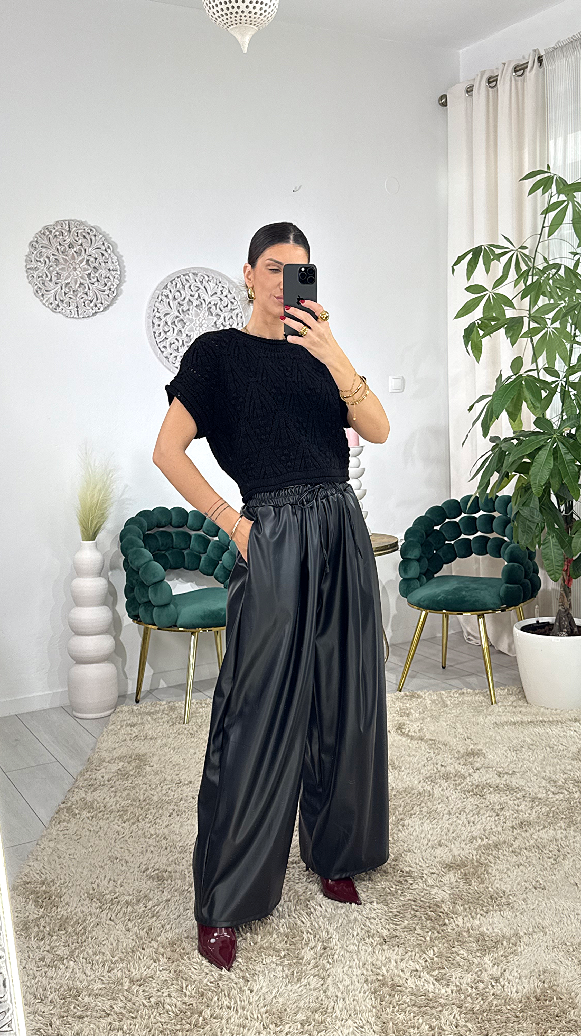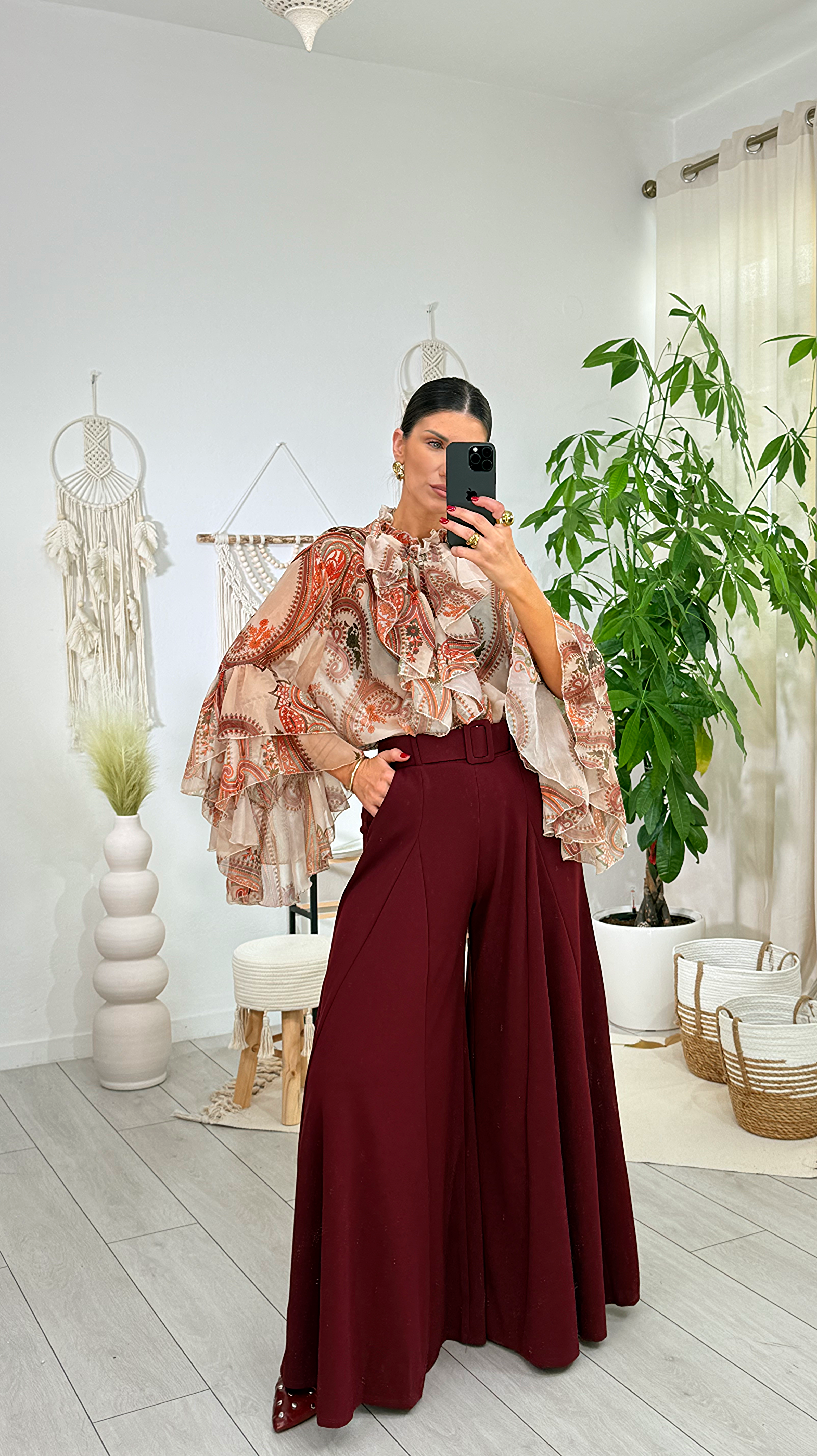 Ψηλόμεσο λευκό παντελόνι με πιέτες, κατασκευασμένο από ανάλαφρο ύφασμα για άνεση και κομψότητα όλη μέρα. Ιδανικό για chic εμφανίσεις στο γραφείο ή τη βόλτα, συνδυάζεται εύκολα με πουκάμισα, τοπ ή σακάκια.