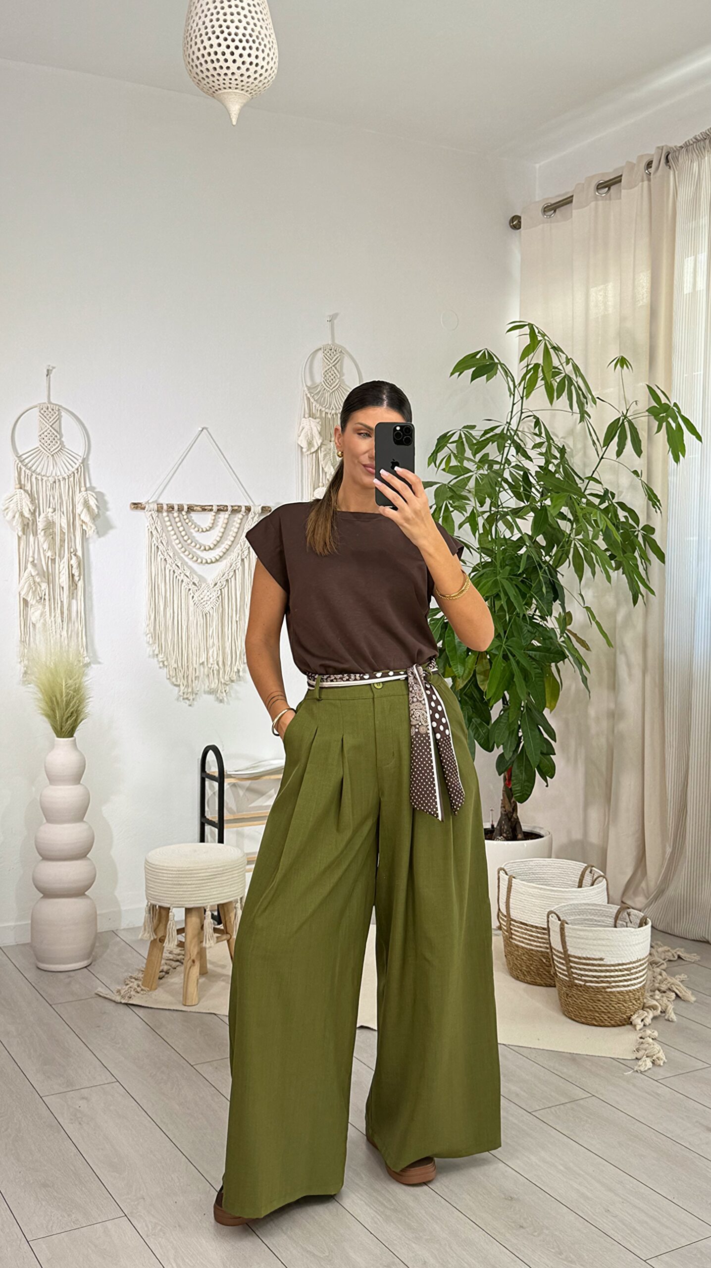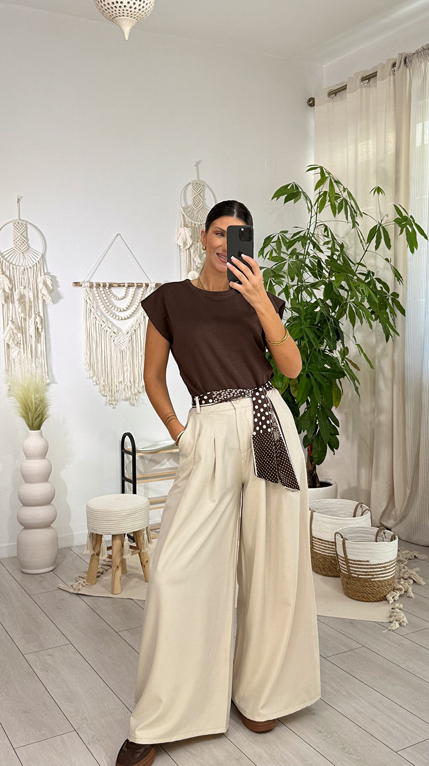 Ψηλόμεσο λευκό παντελόνι με πιέτες, κατασκευασμένο από ανάλαφρο ύφασμα για άνεση και κομψότητα όλη μέρα. Ιδανικό για chic εμφανίσεις στο γραφείο ή τη βόλτα, συνδυάζεται εύκολα με πουκάμισα, τοπ ή σακάκια.