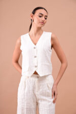 Σετ που αποτελείται από γιλέκο με χρυσά κουμπιά και εφέ τσέπης και παντελόνι με λάστιχο στη μέση.