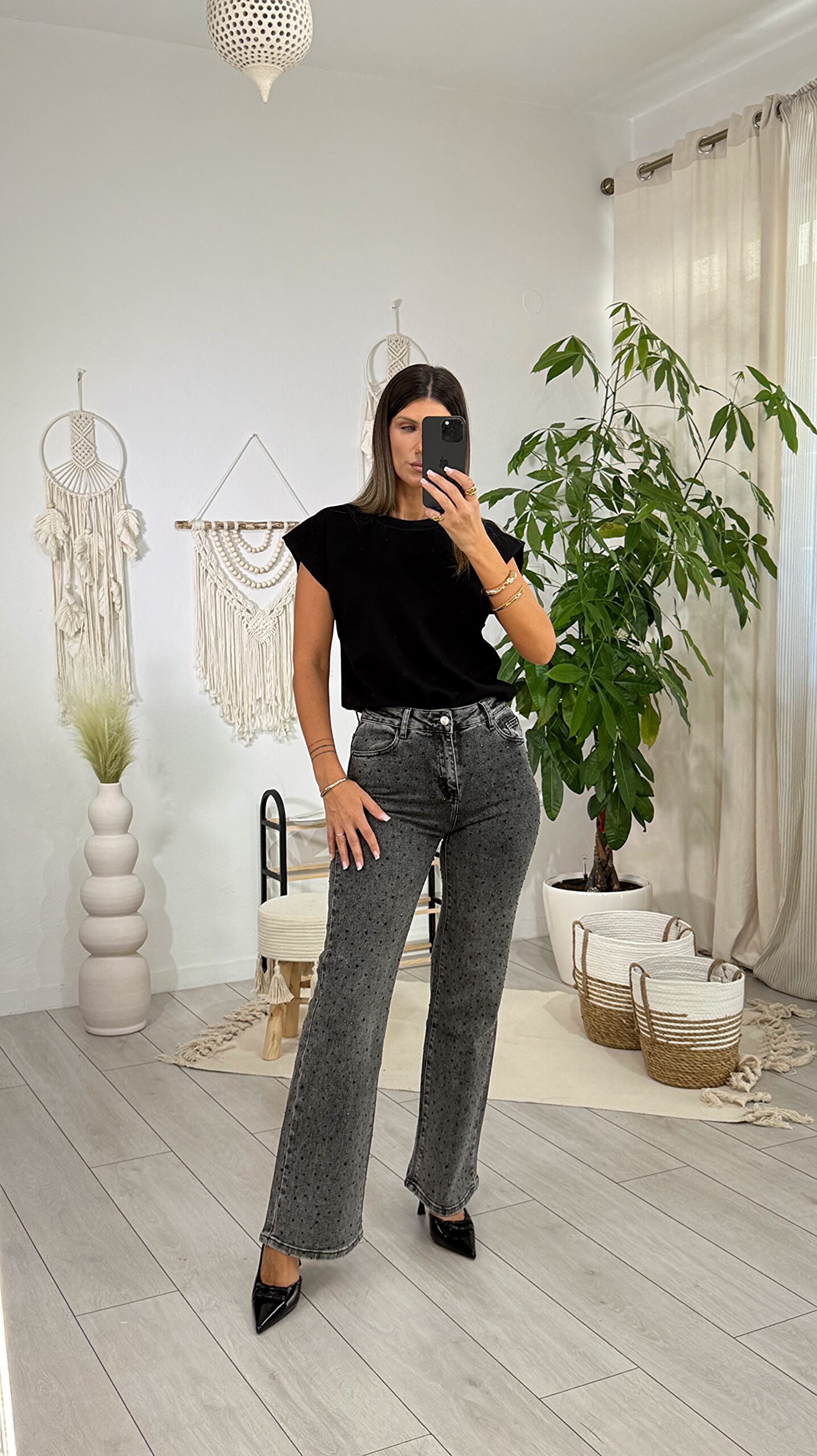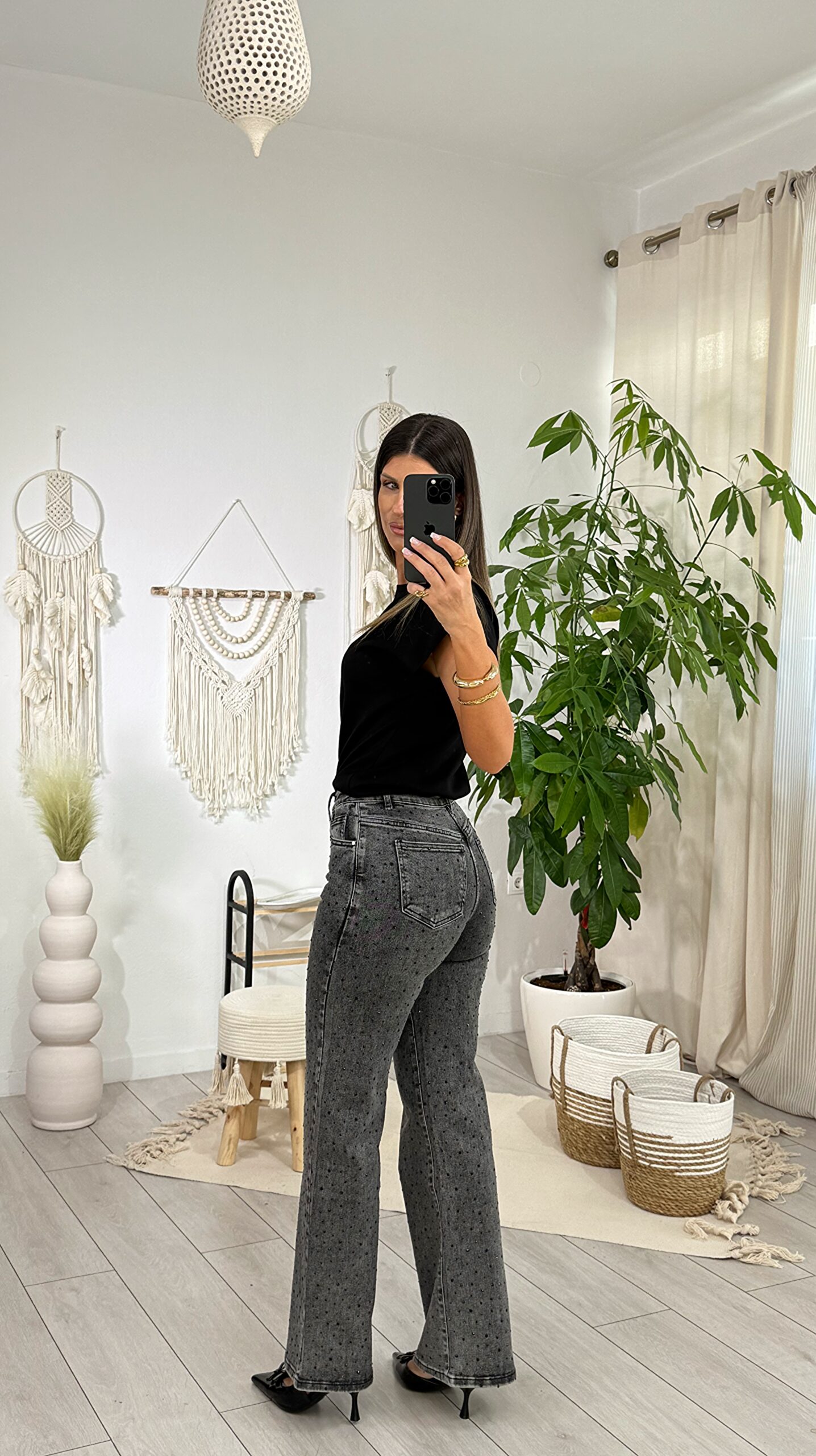 Ανανεώστε το καθημερινό σας στυλ με αυτό το ψηλόμεσο τζιν σε ανοιχτή blue και μαύρη απόχρωση και διακριτικό speckled μοτίβο. Η ίσια γραμμή προσφέρει άνεση και κομψότητα, ενώ συνδυάζεται τέλεια με sneakers ή ψηλοτάκουνα για κάθε περίσταση.