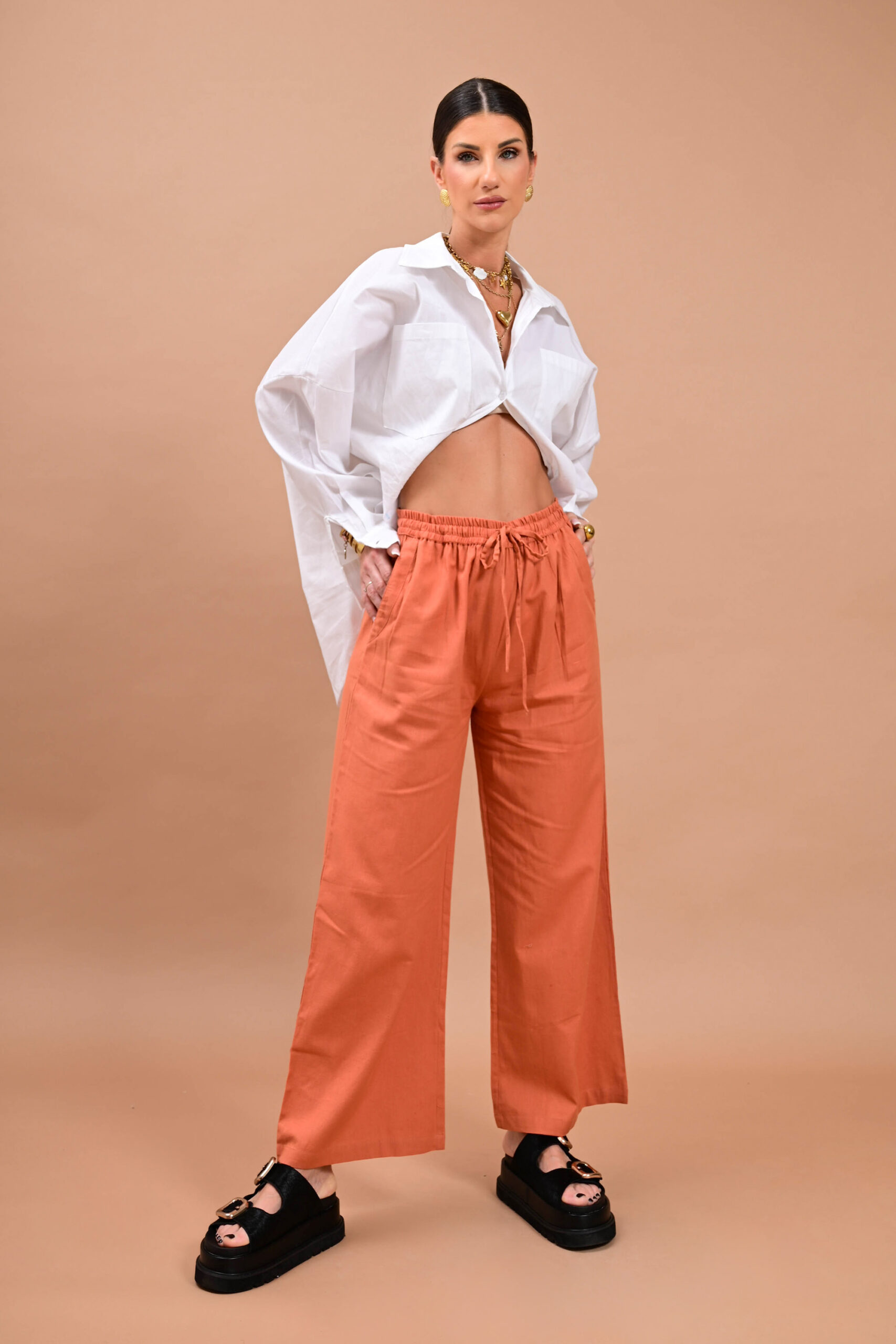 Ένα παντελόνι φαρδύ και άνετο, με λάστιχο στη μέση και κορδόνι για καλύτερη εφαρμογή.